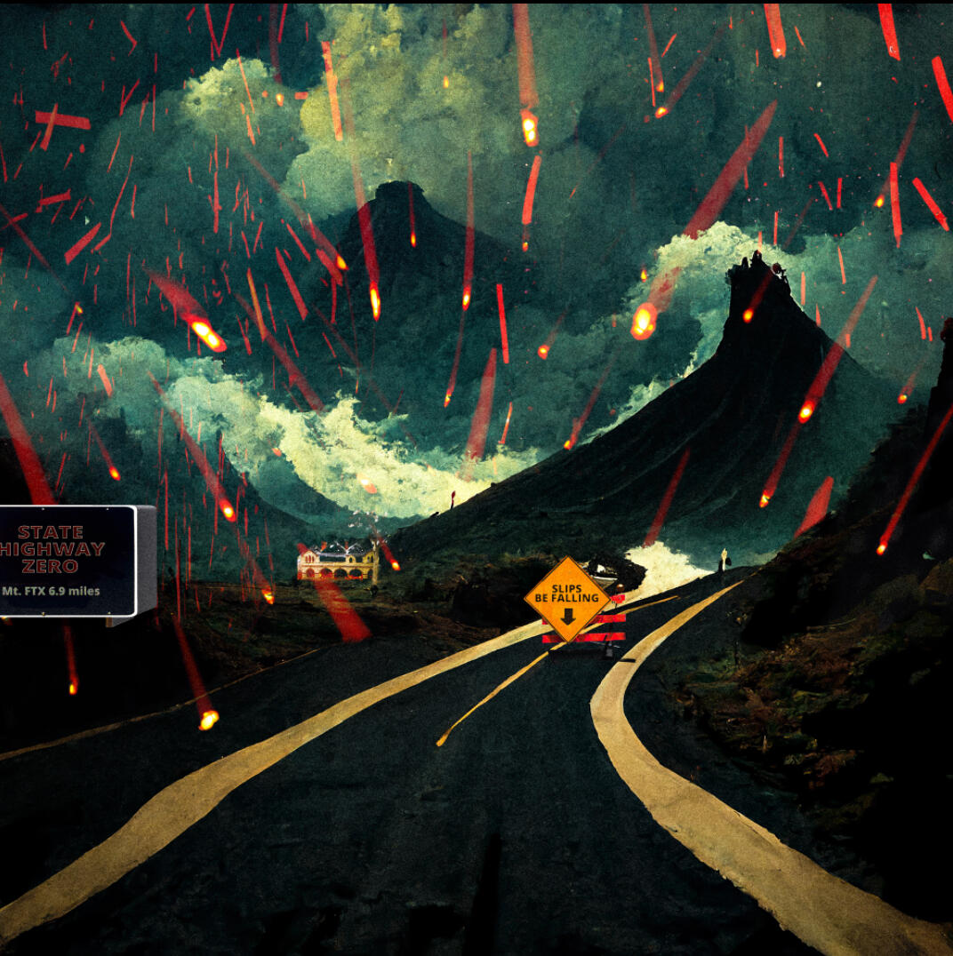 As FTX failed, I minted an open edition titled 'Trouble Ahead' to the Geodetica collection. It is the only edition in the collection and is a composite of both AI and illustration.